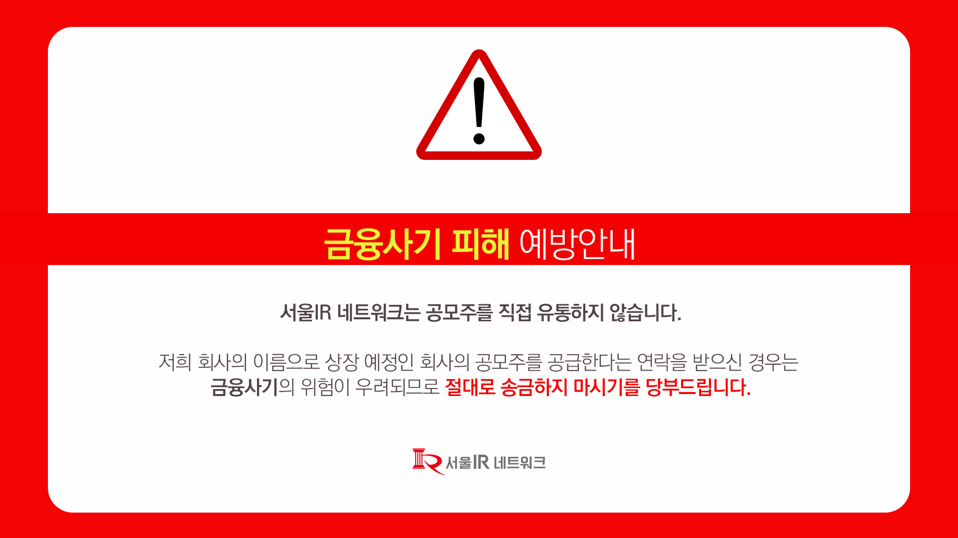 서울IR네트워크는 공모주를 직접 유통하지 않습니다.