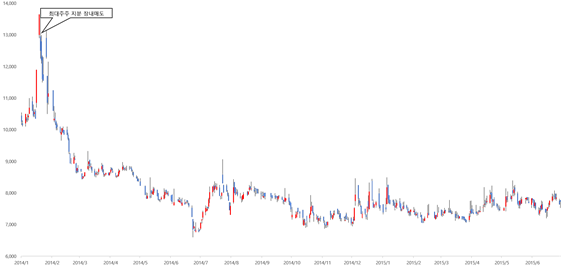 <D사, 2014년 1월 2일 ~ 2015년 6월 30일 주가추이>