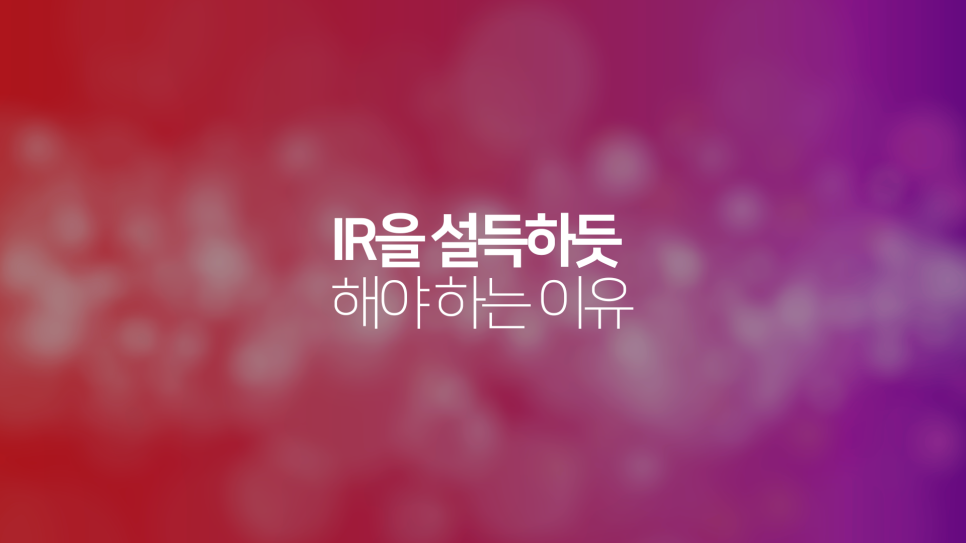 IR은 숫자를 읽어주는 행위를 넘어, 기업의 현재를 분석하고 미래를 예측하며, 그 모든 과정을 통해 투자자의 이성과 감성을 동시에 움직여 '투자를 결정하게 만드는' 설득의 예술과 같습니다. 그렇기에 IR은 철저하게 투자자의 관점에서, 설득력 있는 방식으로 이루어져야 합니다.