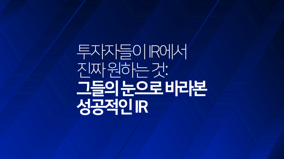 결론적으로, 투자자들이 IR에서 진짜 원하는 것은 기업의 '진정성 있는 미래 가치' 입니다.
